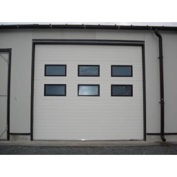 Usa sectionala rezidentiala, izolata termic cu spuma poliuretanica, panouri de tip sandwich, din otel, 40 mm grosime, tratate impotriva coroziunii, cu coeficient de transfer termic K=0.5 W/m2 grd C.